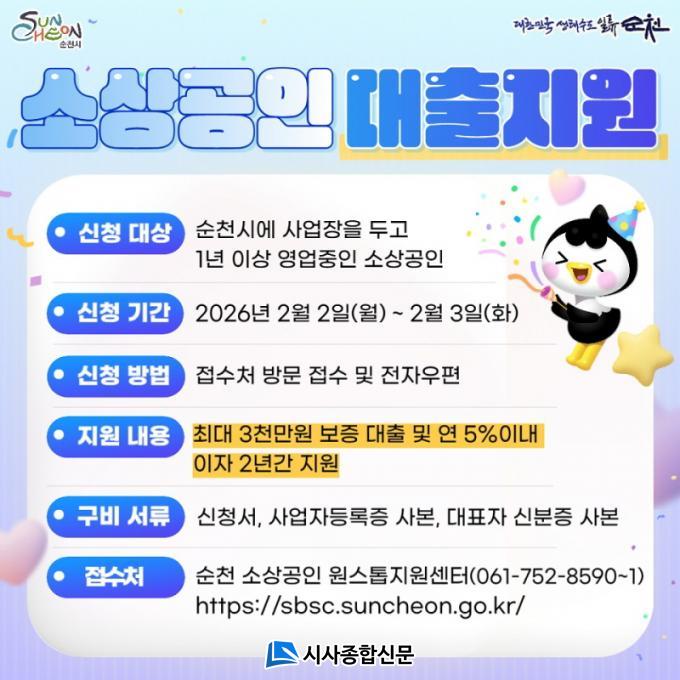 Áö¿ø ´ë»óÀº ¼øÃµ½Ã¿¡ »ç¾÷ÀåÀ» µÎ°í 1³â ÀÌ»ó ¿µ¾÷ ÁßÀÎ ¼Ò»ó°øÀÎÀ¸·Î, ¾÷ü´ç ÃÖ´ë 3õ¸¸ ¿ø±îÁö ´ëÃâ °¡´ÉÇϸç, 2³â°£ ¿¬ 5% À̳»ÀÇ ´ëÃâÀÌÀÚ¸¦ ¼øÃµ½Ã°¡ Áö¿øÇÑ´Ù. À̴ Ÿ ÁöÀÚü¿¡ ºñÇØ ³ôÀº ¼öÁØÀÇ ÀÌÂ÷º¸Àü Áö¿øÀ¸·Î, ¼Ò»ó°øÀÎÀÇ ±ÝÀ¶ºñ¿ë ºÎ´ãÀ» Å©°Ô ´ú¾îÁÙ °ÍÀ¸·Î ±â´ëµÈ´Ù.