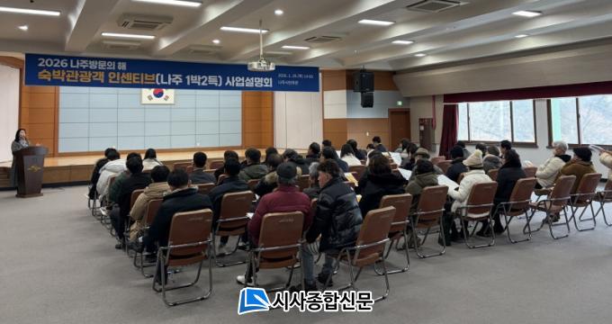 ³ªÁÖ½Ã(½ÃÀå À±º´ÅÂ)´Â Áö³ 29ÀÏ ³ªÁֽùÎȸ°ü¿¡¼ °ü³» ¼÷¹Ú¾÷¼Ò¸¦ ´ë»óÀ¸·Î ¼÷¹Ú°ü±¤ Àμ¾Æ¼ºê Áö¿ø»ç¾÷ ¡®³ªÁÖ 1¹Ú 2µæ¡¯ »ç¾÷¼³¸íȸ¸¦ °³ÃÖÇß´Ù°í 30ÀÏ ¹àÇû´Ù.