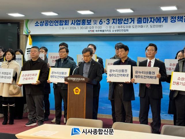 [½Ã»çÁ¾ÇսŹ® = °í¼º¹Î ±âÀÚ] Á¦ÁÖÆ¯º°ÀÚÄ¡µµ¼Ò»ó°øÀο¬ÇÕȸ´Â Áö³ 1¿ù 30ÀÏ ¿ÀÀü 11½Ã, Á¦ÁÖµµÀÇȸ µµ¹ÎÄ«Æä¿¡¼ 2025³â ÁÖ¿ä »ç¾÷ ¼º°ú¸¦ °øÀ¯Çϰí, 2026³â Áö¹æ¼±°Å Ã⸶ ¿¹Á¤ÀÚµéÀ» ´ë»óÀ¸·Î ¼Ò»ó°øÀÎ Á¤Ã¥ °ÇÀǸ¦ ´ãÀº ¼º¸í¼¸¦ ¹ßÇ¥Çß´Ù.