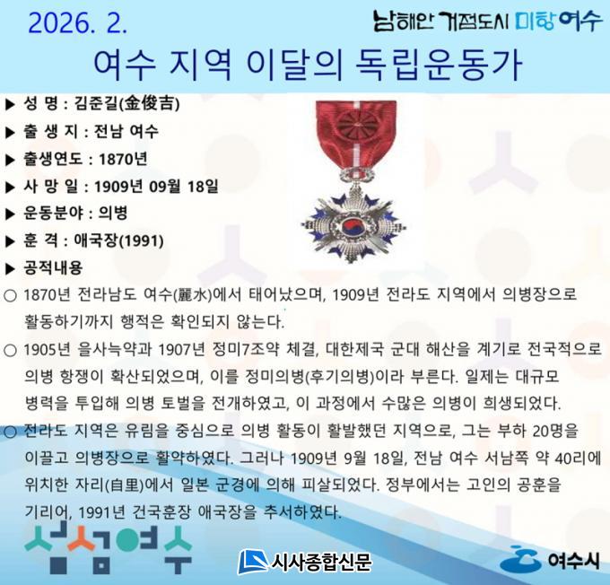 ÇÑÆí, ¿©¼ö½Ã´Â µ¶¸³¿îµ¿°¡ÀÇ ¿ª»çÀû °¡Ä¡¸¦ ÀçÁ¶¸íÇÏ°í µ¶¸³ Á¤½ÅÀ» È®»êÇϱâ À§ÇØ 2022³â 8¿ùºÎÅÍ ¿©¼öÁö¿ªµ¶¸³¿îµ¿°¡À¯Á·È¸¿Í °øµ¿À¸·Î Áö¿ª Ãâ½Å µ¶¸³¿îµ¿°¡¸¦ ¼±Á¤ÇØ È«º¸Çϰí ÀÖÀ¸¸ç ÇöÀç±îÁö ¿©¼öÁö¿ª µ¶¸³¿îµ¿°¡ ÃÑ 85¸íÀ» Ãß¼Çß´Ù.