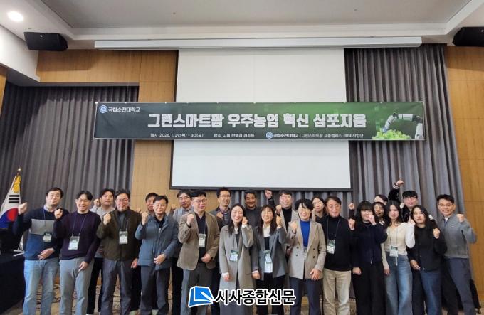 À̹ø ½ÉÆ÷Áö¿òÀº ±¹¸³¼øÃµ´ëÇб³ ±×¸°½º¸¶Æ®ÆÊ½ºÄð °íÈïÄ·ÆÛ½º¿Í RISE»ç¾÷´ÜÀÌ °øµ¿ ÁÖÃÖ¡¤ÁÖ°üÇß´Ù. ´ëÇÐ ¿¬±¸ÁøÀ» ºñ·ÔÇØ °ü·Ã »ê¾÷ü, ¿¬±¸±â°ü, ÁöÀÚü °ü°èÀÚ µî ¾à 40¿© ¸íÀÌ Âü¼®ÇØ ¿ìÁÖ³ó¾÷°ú ½º¸¶Æ®ÆÊ ºÐ¾ßÀÇ ¿¬±¸ ¼º°ú¸¦ °øÀ¯Çϰí ÇâÈÄ Çù·Â ¹æ¾ÈÀ» ³íÀÇÇß´Ù.