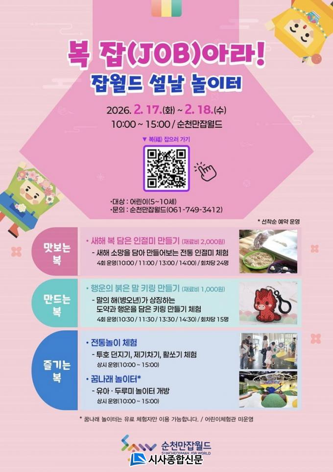 À̹ø À̺¥Æ®´Â ¼³³¯ ¿¬ÈÞ¸¦ ¸Â¾Æ ¾î¸°ÀÌ¿Í °¡Á·ÀÌ ÇÔ²² Áñ±æ ¼ö ÀÖ´Â ¼¼´ë °ø°¨Çü ÀüÅë¹®È Ã¼Çè ¸¶´çÀ¸·Î ¸¶·ÃµÆ´Ù. ¾î¸°À̵éÀº °¡Á·°ú ÇÔ²² º¹À» ºô¸ç »õÇØ¸¦ ´ÙÁüÇÏ´Â ¼³³¯ÀÇ Àǹ̸¦ ´ãÀº ´Ù¾çÇÑ Ã¼Çè ÇÁ·Î±×·¥¿¡ Âü¿©ÇØ Æ¯º°ÇÑ ¸íÀý Ãß¾ïÀ» ½×À» ¼ö ÀÖ´Ù.