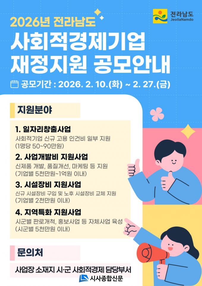 Àü³²¿¡ ÀÖ´Â ¿¹ºñ¡¤ÀÎÁõ »çȸÀû±â¾÷ÀÌ ÀÏÀÚ¸®Ã¢Ãâ»ç¾÷À» ½ÅûÇÏ¸é »çȸÀû±â¾÷ÅëÇÕÁ¤º¸½Ã½ºÅÛ(www.seis.or.kr)¿¡ Á¢¼ÓÇØ ÀÎÅͳÝÀ¸·Î ½ÅûÇϰí Àü³²Çü ÀÏÀÚ¸®Ã¢Ãâ»ç¾÷Àº ½Ã±º¿¡¼ º°µµ·Î ¸ðÁýÇØ Áö¿øÇÑ´Ù.