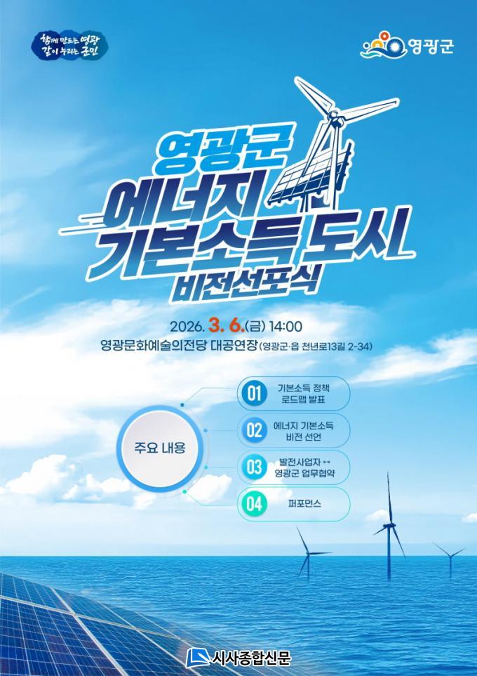 ±ºÀº 2026³â 3¿ù 6ÀÏ(±Ý) ¿ÀÈÄ 2½Ã, ¿µ±¤¹®È¿¹¼úÀÇÀü´ç ´ë°ø¿¬Àå¿¡¼ ¡¸¿µ±¤±º ¿¡³ÊÁö ±âº»¼Òµæ µµ½Ã ºñÀü¼±Æ÷½Ä¡¹À» °³ÃÖÇÑ´Ù°í ¹àÇû´Ù.
