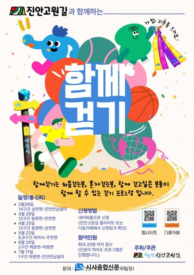 À̹ø ÇÁ·Î±×·¥Àº 2¿ùºÎÅÍ 7¿ù±îÁö ¸Å¿ù 1ȸ Á¤±âÀûÀ¸·Î ÃÑ 6ȸ °³ÃֵǸç, ù °È±â Çà»ç´Â 2¿ù 28ÀÏ¿¡ ½ÃÀ۵ȴÙ. À̹ø ÇÁ·Î±×·¥Àº Áø¾È°í¿ø±æÀ» óÀ½ Á¢ÇÏ´Â Ãʺ¸ º¸ÇàÀÚ³ª È¥ÀÚ °È±âº¸´Ù ¿©·µÀÌ ÇÔ²² ¼ÒÅëÇÏ¸ç °È±â¸¦ Èñ¸ÁÇÏ´Â À̵éÀ» À§ÇØ ¸¶·ÃµÆ´Ù.