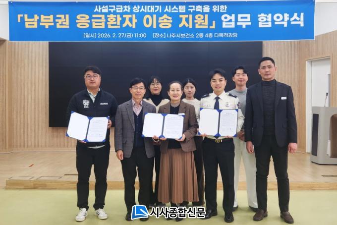 ³ªÁֽú¸°Ç¼Ò´Â 27ÀÏ º¸°Ç¼Ò 4Ãþ ´Ù¸ñÀû°´ç¿¡¼ ÀÌâ119¾ÈÀü¼¾ÅÍ, Àü³²EMS¿Í ³²ºÎ±Ç ÀÀ±ÞȯÀÚ ÀÌ¼Û Áö¿ø»ç¾÷ÀÇ ¿øÈ°ÇÑ ÃßÁøÀ» À§ÇÑ ¾÷¹«Çù¾àÀ» ü°áÇß´Ù°í ¹àÇû´Ù.