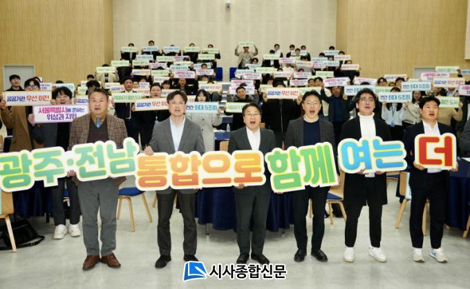 °±âÁ¤ ±¤ÁÖ½ÃÀåÀº ¡°Ã·´Ü3Áö±¸ AIÁýÀû´ÜÁö ÁöÁ¤, Àü³² µ¿ºÎ±Ç°ú ±¤ÁÖ¸¦ ÀÕ´Â AX»ê¾÷ ¸Þ°¡Å¬·¯½ºÅÍ Á¶¼º µî »ê¾÷Áöµµ´Â ±¤ÁÖÀü³² ÅëÇÕÀ» ÅëÇØ ±×¸± ¼ö ÀÖ¾ú´Ù¡±¸ç ¡°ÅëÇÕÀ» °è±â·Î »ê¾÷À» Ű¿ì°í, ÀÏÀÚ¸®¸¦ ¸¸µé°í, û³âµéÀÌ ¸Ó¹«´Â ¡®ÀÎ ÅëÇÕÆ¯º°½Ã¡¯, ¡®ÀÎ ±¤ÁÖ¡¯ÀÇ ²ÞÀ» ÀÌ·ï°¡°Ú´Ù¡±°í ¹àÇû´Ù.