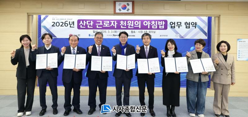 ÀüÁֽô 3ÀÏ ½Ãû 4Ãþ ȸÀǽǿ¡¼ ¡®2026³â »ê´Ü ±Ù·ÎÀÚ Ãµ¿øÀÇ ¾ÆÄ§¹ä¡¯ »ç¾÷ ÃßÁøÀ» À§ÇÑ ¾÷¹«Çù¾àÀ» ü°áÇß´Ù.