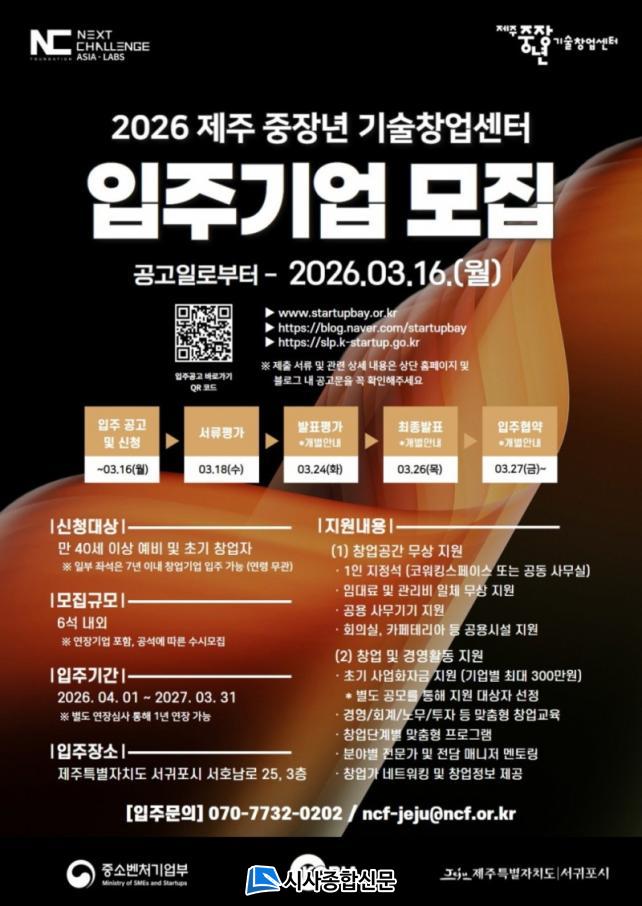 ÁÖ¿ä ÀÔÁÖ ´ë»óÀº 40¼¼ ÀÌ»óÀÇ ¿¹ºñ ¹× Ãʱâ â¾÷ÀÚÀ̸ç ÀϺΠÁ¼®¿¡ ´ëÇØ¼´Â ¿¬·É°ú ¹«°üÇÏ°Ô 7³â À̳»ÀÇ ¾÷·ÂÀ» °¡Áø »ç¾÷ÀÚµµ ÀÔÁÖÇÒ ¼ö ÀÖ´Ù. ÀÔÁÖ°ø°£Àº Á¦ÁÖÇõ½Åµµ½Ã º¹ÇÕÇõ½Å¼¾ÅÍ 3Ãþ(¼±ÍÆ÷½Ã ¼È£³²·Î 25)¿¡ À§Ä¡ÇØ ÀÖÀ¸¸ç, °øµ¿Çü »ç¹«½Ç ³» 1ÀÎ ÁöÁ¤¼®À¸·Î Áö¿øµÈ´Ù.