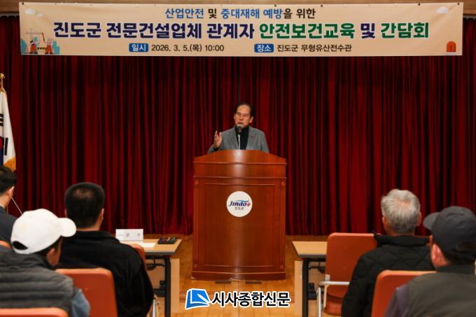 [½Ã»çÁ¾ÇսŹ® = ¿À½ÂÅà ±âÀÚ] Áøµµ±ºÀº Áö³­ 5ÀÏ¿¡ Áøµµ±º ¹«ÇüÀ¯»êÀü¼ö°ü¿¡¼­ Áøµµ °ü³»ÀÇ °Ç¼³°ø»ç¸¦ ÁøÇà ÁßÀÎ Àü¹®°Ç¼³¾÷ü °ü°èÀÚ¸¦ ´ë»óÀ¸·Î ¾ÈÀüº¸°Ç±³À°°ú °£´ãȸ¸¦ ÁøÇàÇß´Ù.