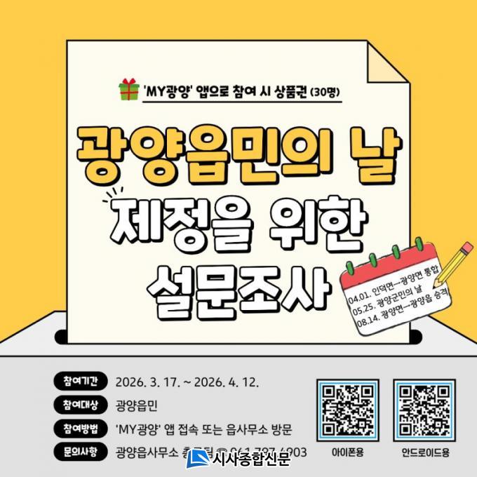 À̹ø ¼³¹®Á¶»ç´Â Áö¿ªÀÇ Á¤Ã¼¼ºÀ» °ÈÇϰí À¾¹Î ÈÇÕ°ú ÀÚ±à½ÉÀ» ³ôÀ̱â À§ÇÑ ¡®±¤¾çÀ¾¹ÎÀÇ ³¯¡¯ Á¦Á¤À» ÃßÁøÇÏ´Â °úÁ¤¿¡¼ ¸¹Àº ±¤¾çÀ¾¹ÎµéÀÌ °ø°¨ÇÒ ¼ö ÀÖ´Â ÀÇ¹Ì ÀÖ´Â ³¯À» Á¤Çϱâ À§ÇØ ÁֹΠÀǰßÀ» ¼ö·ÅÇϰíÀÚ ¸¶·ÃµÆ´Ù.