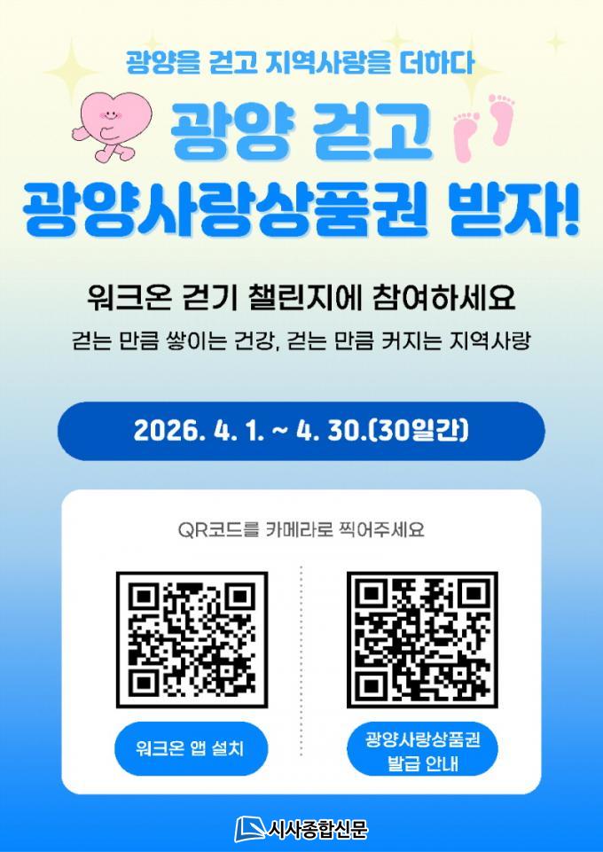 ÇÑÆí, ±¤¾ç½Ã´Â ½Ã¹ÎÀÇ ÀÏ»ó ¼Ó ½ÅüȰµ¿À» ´Ã¸®°í °Ç°ÁõÁøÀ» À§ÇØ ¸ð¹ÙÀÏ °È±â ¾Û ¡®¿öÅ©¿Â¡¯À» Ȱ¿ëÇÑ °È±â 縰Áö¸¦ ¸Å¿ù ¿î¿µÇϰí ÀÖÀ¸¸ç, ±¤¾ç½Ã °ø½Ä Ä¿¹Â´ÏƼ¿¡´Â ÇöÀç 1¸¸ 327¿© ¸íÀÌ °¡ÀÔÇØ ²ÙÁØÇÑ Âü¿©°¡ À̾îÁö°í ÀÖ´Ù.