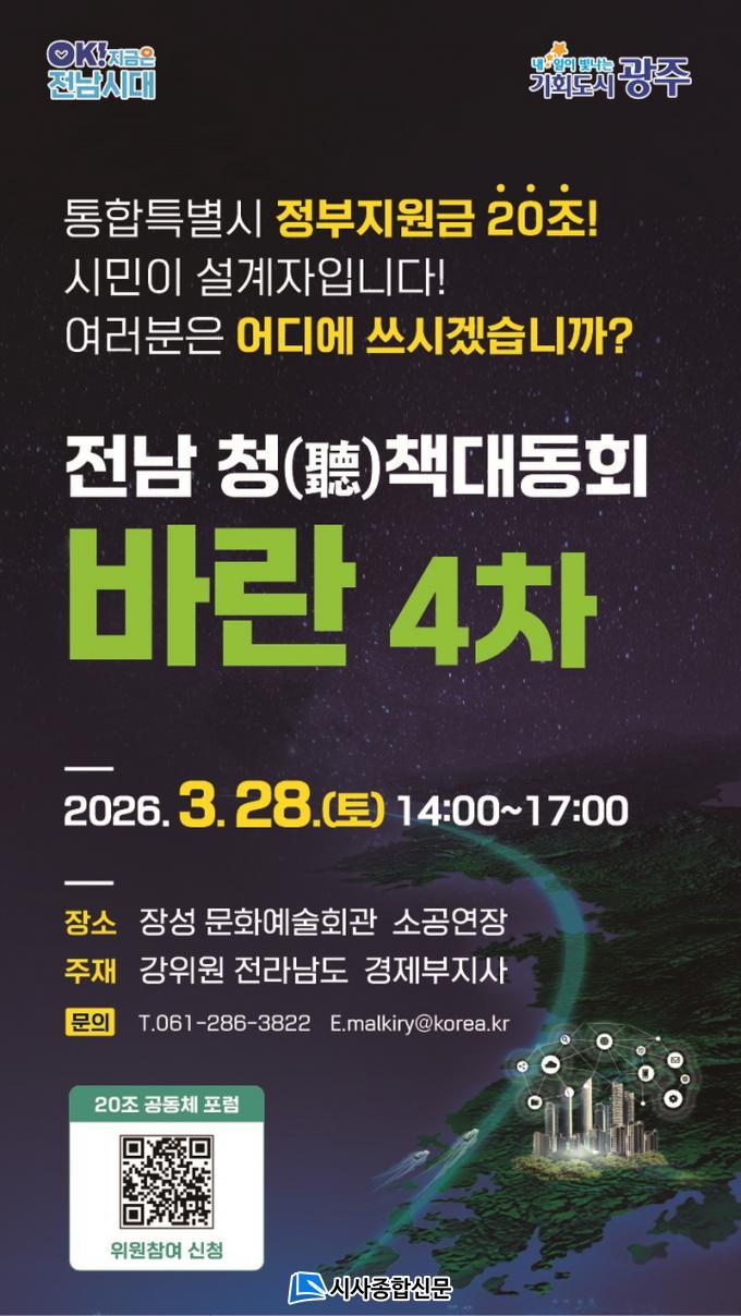 À̹ø ¡®¹Ù¶õ¡¯Àº ¡®20Á¶ ½Ã¹Î°øµ¿Ã¼ Æ÷·³¡¯ÀÇ Ãâ¹ß ½ÅÈ£´Ù. Àü³²µµ´Â Àü³²¡¤±¤ÁÖ ÅëÇÕÆ¯º°½Ã Ãâ¹üÀ» ¾ÕµÎ°í, Á¤ºÎ Áö¿ø 20Á¶ ¿ø ÀçÁ¤ÀÇ È°¿ë ¹æÇâÀ» ½Ã¡¤µµ¹Î°ú ÇÔ²² ³íÀÇÇÏ´Â ¡®20Á¶ ½Ã¹Î°øµ¿Ã¼ Æ÷·³¡¯À» ½ÃÀÛÇÑ´Ù.