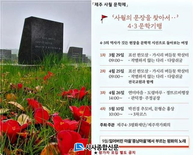 ¡®»ç¿ùÀÇ ¹®ÀåÀ» ã¾Æ¼¡¯ 4․3¹®ÇбâÇàÀº ÃÑ 3°³ÀÇ ÄÚ½º¸¦ Âü¿© ´ë»óº° ¸ÂÃãÇüÀ¸·Î ¿î¿µÇÑ´Ù. 1Â÷(3¿ù 29ÀÏ)¿Í 2Â÷(4¿ù 25ÀÏ)´Â ¡°ÀÛº°ÇÏÁö ¾Ê´Â ±â¾ï¡±À» ÁÖÁ¦·Î, ÇѰÀÇ ¼Ò¼³ ¡ºÀÛº°ÇÏÁö ¾Ê´Â´Ù¡»¸¦ µû¶ó°¡´Â ¿©Á¤ÀÌ´Ù.