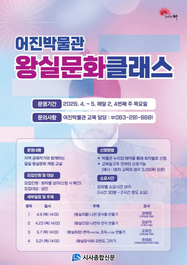 | ÀüÁֽà ¾îÁø¹Ú¹°°ü, ¿Õ½Ç¹®È ÀÏÀÏ Ã¼Çè°Á ¸¶·Ã ¿À´Â 4¿ùºÎÅÍ ¿Õ½Ç ¼Ó ¹®È¸¦ ÀÏÀÏ Ã¼Çè°Á¸¦ ÅëÇØ ¾Ë¾Æº¸´Â ¡®¿Õ½Ç¹®ÈŬ·¡½º¡¯ ¿î¿µ |