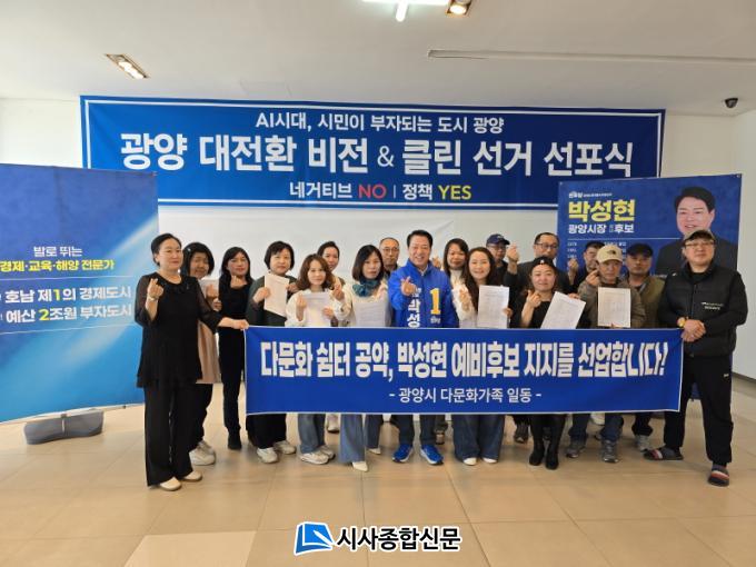 [½Ã»çÁ¾ÇսŹ® = ¿À½ÂÅà ±âÀÚ] ±¤¾ç½Ã ´Ù¹®È°¡Á¤ ±¸¼º¿øµéÀÌ ¹Ú¼ºÇö ±¤¾ç½ÃÀå ¿¹ºñÈĺ¸¿¡ ´ëÇÑ ÁöÁö¸¦ ¼±¾ðÇß´Ù.