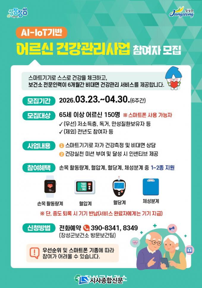 ±ºÀº 4¿ù ¸»±îÁö ¡®ÀΰøÁö´É-»ç¹°ÀÎÅͳÝ(AI-IoT) ±â¹Ý °Ç°­°ü¸®»ç¾÷¡¯¿¡ Âü¿©ÇÒ 65¼¼ ÀÌ»ó ÁֹΠ150¸íÀ» ¸ðÁýÇÑ´Ù.