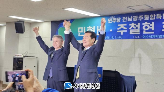 µÎ È帴 ³¡À¸·Î ¡°½Ã¹ÎÀÌ Á÷Á¢ Âü¿©ÇÏ°í Æò°¡ÇÏ´Â ¡®½Ã¹ÎÁÖ±Ç ÅëÇÕÆ¯º°½Ã¡¯ÀÇ Åä´ëµµ ÇÔ²² ¼¼¿ì°Ú´Ù¡±°í ´ÙÁüÇϸç, ¡°´õ Å« ÅëÇÕÀ¸·Î, ´õ °ÇÑ Àü³²±¤ÁÖ·Î ³ª¾Æ°¡°Ú´Ù¡±´Â Æ÷ºÎ¿Í ÇÔ²², Èĺ¸ ´ÜÀÏȰ¡ Àü³²¡¤±¤ÁÖ ´ëµµ¾àÀÇ Ãâ¹ßÁ¡ÀÌ µÉ ¼ö ÀÖµµ·Ï Àü³²±¤ÁÖÅëÇÕÆ¯º°½Ã¹ÎµéÀÌ ÇÔ²² ÈûÀ» ¸ð¾Æ ´Þ¶ó°í È£¼ÒÇß´Ù.