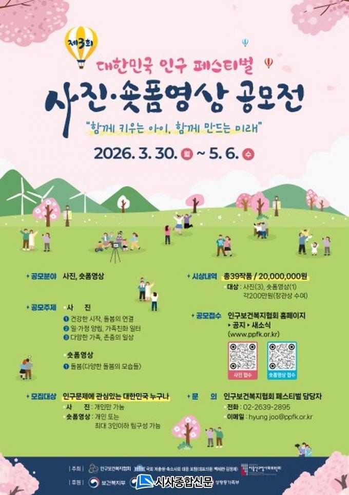 ¡®Á¦3ȸ ´ëÇѹα¹ Àα¸ Æä½ºÆ¼¹ú¡¯ °ø¸ðÀü¿¡ ´ëÇÑ ÀÚ¼¼ÇÑ »çÇ×Àº Çùȸ ´©¸®Áý(www.ppfk.or.kr) °øÁö ¢¹ »õ¼Ò½Ä¿¡¼ È®ÀÎÇÒ ¼ö ÀÖ´Ù.
