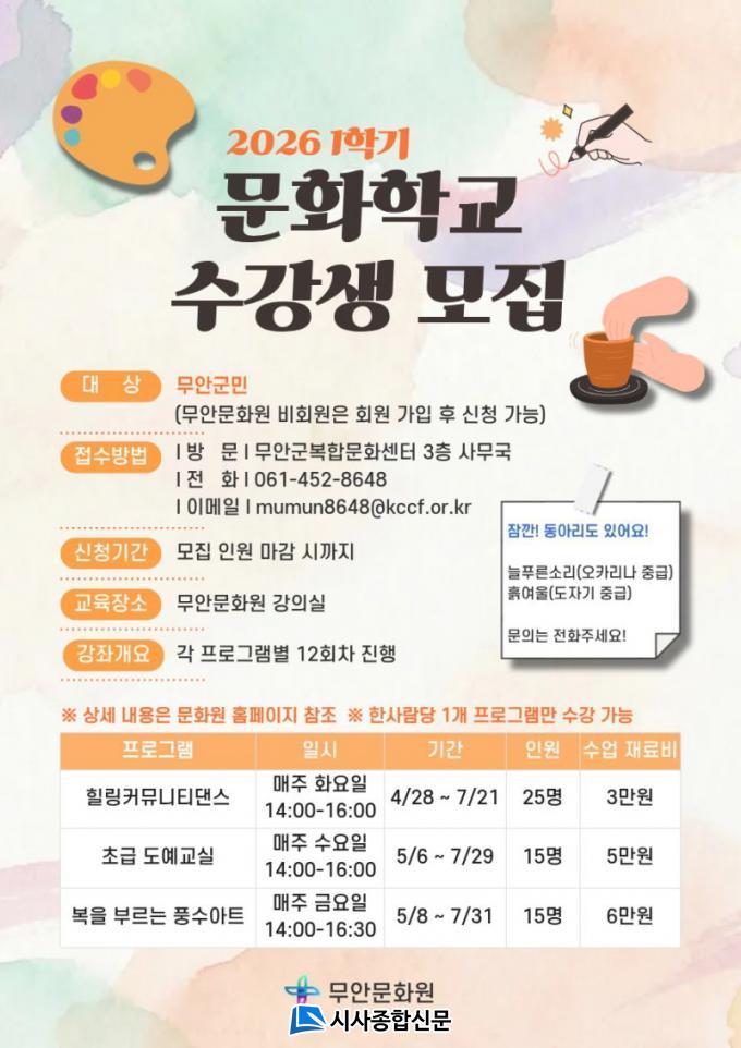¼ö° ½ÅûÀº ¹«¾È±ºº¹ÇÕ¹®È¼¾ÅÍ 3Ãþ ¹«¾È¹®È¿ø »ç¹«±¹À¸·Î ¹æ¹®Çϰųª ÀüÈ(061-452-8648) ¹× À̸ÞÀÏ(mumun8648@kccf.or.kr)À» ÅëÇØ °¡´ÉÇÏ´Ù. ±âŸ ÀÚ¼¼ÇÑ »çÇ×Àº ¹«¾È¹®È¿ø ȨÆäÀÌÁö(http://muanculture.or.kr/)¸¦ ÅëÇØ È®ÀÎ °¡´ÉÇÏ´Ù.