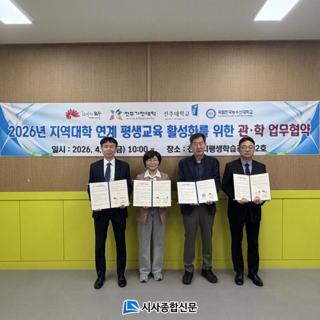 ÀüÁֽô 10ÀÏ ÀüÁÖ½ÃÆò»ýÇнÀ°ü¿¡¼ ÀüÁÖ±âÀü´ëÇб³ Æò»ý±³À°¿ø°ú ÀüÁÖ´ëÇб³ »êÇÐÇù·Â´Ü, Çѱ¹³ó¼ö»ê´ëÇб³ Æò»ý±³À°¿ø°ú ¡®ÀüÁֽà Æò»ýÇнÀ Ȱ¼ºÈ¸¦ À§ÇÑ Áö¿ª´ëÇÐ ¿¬°è Æò»ý±³À° Ȱ¼ºÈ »ç¾÷ ¾÷¹«Çù¾à¡¯À» ü°áÇß´Ù.