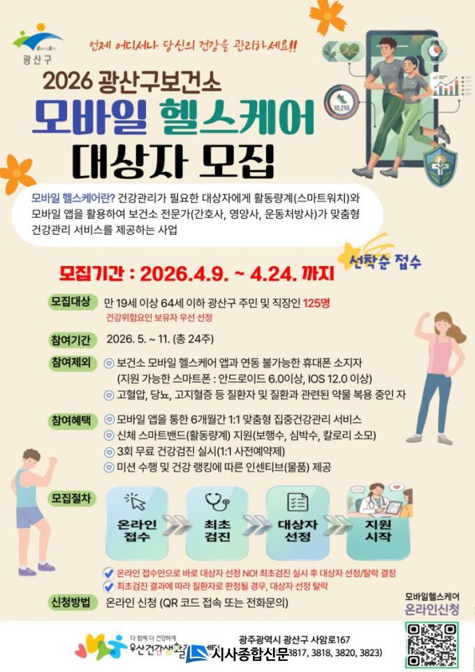 | ±¤Áֽà ±¤»ê±¸, 2026³â ¸ð¹ÙÀÏ ÇコÄÉ¾î »ç¾÷ ¿î¿µ ¹«·á °Ç°°ËÁøºÎÅÍ 1:1 »ó´ã±îÁö Á¦°ø¡¦¸¸ 19¼¼¡64¼¼ ´ë»ó |