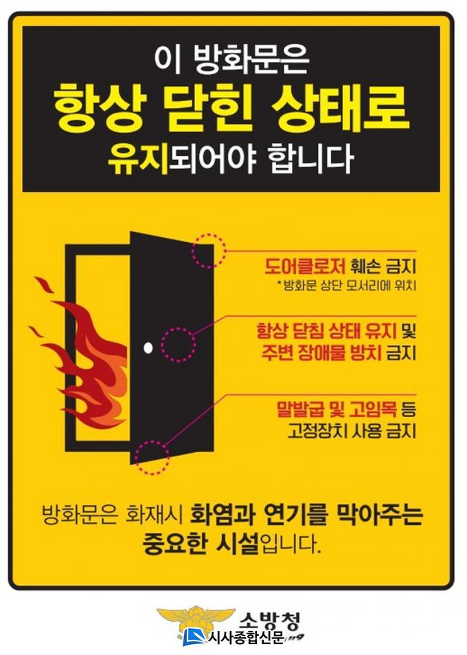 ¹æÈ¹®Àº ÈÀç ¹ß»ý ½Ã ºÒ±æ°ú ¿¬±âÀÇ È®»êÀ» Â÷´ÜÇØ ´ëÇÇ ½Ã°£À» È®º¸ÇÏ´Â Áß¿äÇÑ ¼Ò¹æ½Ã¼³ÀÌ´Ù. ƯÈ÷ °è´Ü½Ç°ú º¹µµ µî ÇdzÅë·Î¿¡ ¼³Ä¡µÈ ¹æÈ¹®Àº Ç×»ó ´ÝÈù »óŸ¦ À¯ÁöÇØ¾ß Á¦ ±â´ÉÀ» ¹ßÈÖÇÒ ¼ö ÀÖ´Ù.