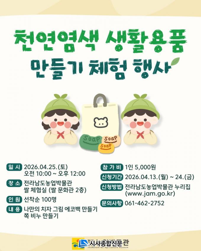 À̹ø Çà»ç´Â ³ó°æ¹®È ¼Ó¿¡ ³ì¾ÆÀÖ´Â ÀüÅë õ¿¬¿°»ö ±â¹ýÀ» Çö´ëÀû »ýȰ¿ëǰ¿¡ Á¢¸ñÇØ µµ¹Î¿¡°Ô ³ó¾÷ÀÇ ´Ùä·Î¿î °¡Ä¡¿Í ģȯ°æÀû »ýȰ¾ç½ÄÀ» üÇèÅä·Ï Çϱâ À§ÇØ ¸¶·ÃµÆ´Ù.