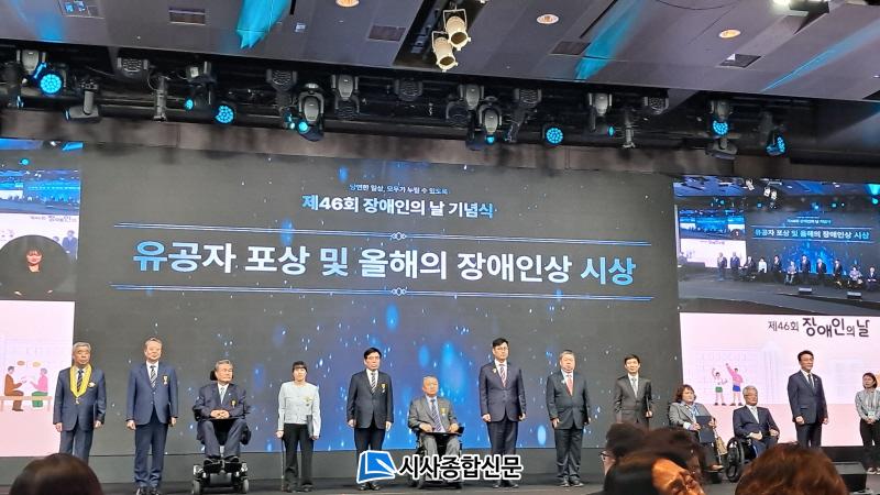 20ÀÏ ¿ÀÀü ¼¿ï¿¡¼ ÁøÇàµÈ Àå¾ÖÀÎÀÇ ³¯ ±â³ä½Ä¿¡¼± ±è¹Î¼® ±¹¹«ÃѸ®¿Í Á¤Àº°æ º¸°Çº¹ÁöºÎ Àå°ü, Àå¾ÖÀκ¹Áö À¯°øÀÚ, Àå¾ÖÀΰú °¡Á· µî 300¿© ¸íÀÌ Âü¼®ÇÑ °¡¿îµ¥ ±¹¹ÎÈÆÀå 3¸í, ±¹¹ÎÆ÷Àå 3¸í, ´ëÅë·Éǥâ 5¸í, ±¹¹«ÃѸ® ǥâ 6¸í µî ÃÑ 17¸í¿¡°Ô Á¤ºÎÆ÷»óÀÌ Àü¼öµÆ´Ù.