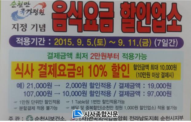 | ¼øÃµ½Ã ¿Ü½Ä¾÷, ¼øÃµ¸¸±¹°¡Á¤¿ø ¼±Æ÷±â³ä ¡°À½½Ä¿ä±Ý ÇÒÀÎÁÖ°£¡± ¿î¿µ |