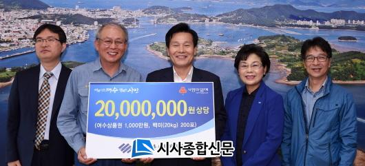 ¿©¼ö½Ã(½ÃÀå ÁÖöÇö)¿¡ µû¸£¸é Áö³ 11ÀÏ ¿©¼ö½Ãû ½ÃÀå½Ç¿¡¼ ¿ÍÀÌ¿£ÅØ ±èÅ¿µ ´ëÇ¥ÀÌ»ç µîÀÌ Âü¼®ÇÑ °¡¿îµ¥ ¿©¼ö»óǰ±Ç°ú ¹é¹Ì 2õ¸¸¿ø »ó´çÀÇ ÈÄ¿øÁõ¼ Àü´Þ½ÄÀ» °¡Á³´Ù.
