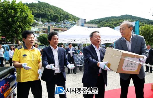 ÁÖöÇö ¿©¼ö½ÃÀå°ú ¹ÚÁ¤Ã¤ ¿©¼ö½ÃÀÇȸ ÀÇÀå, GSĮŨ½º ±èº´¿ »çÀå µîÀº À̳¯ GSĮŨ½º ºÀ»çÀÚµé°ú ÇÔ²² »ýÇÊǰ ¼¼Æ® Æ÷Àå ÀÛ¾÷À» ¹úÀ̰í, ¼ºÇ° Àü´Þ½Ä ÈÄ »ç¶û³ª´®ÅÍ ¹è½ÄºÀ»ç¿¡ Âü¿©ÇØ ³ª´®ÀÇ Àǹ̸¦ ´õ¿í ºû³Â´Ù.