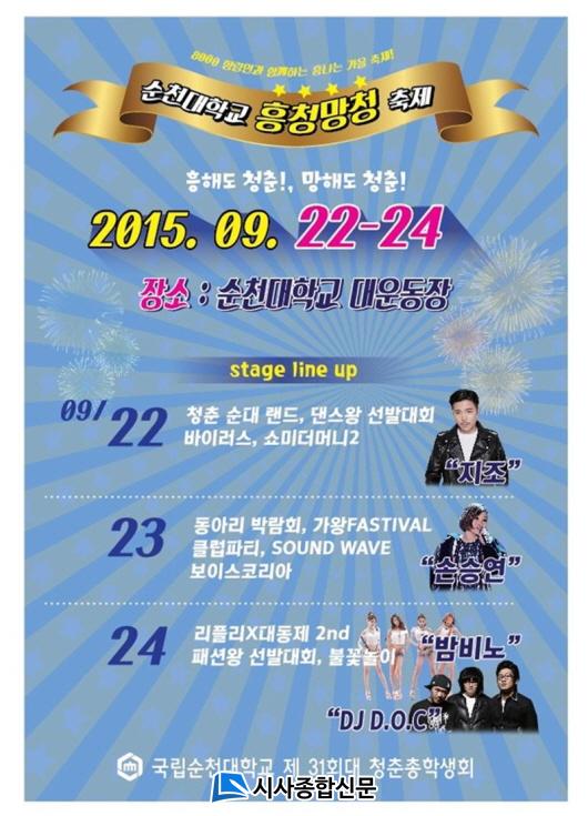 | ¼øÃµ´ëÇб³, 22ÀϺÎÅÍ 25ÀϱîÁö 2015Çг⵵ Ç⸲ ´ëµ¿Á¦ °³ÃÖ Èïû¸Áû(ÈïÇØµµ ûÃá, ¸ÁÇØµµ ûÃá) ´ëµ¿Á¦ |
