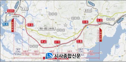 º¸¼º-¸ñÆ÷°£ öµµ°Ç¼³»ç¾÷ÀÌ Áö³ 12ÀÏ ÇØ³²°ø¼³¿îµ¿Àå¿¡¼ Âø°ø½ÄÀ» °®°í º»°ÝÀûÀ¸·Î Âø¼öÇß´Ù. º¸¼º¿¡¼ ¸ñÆ÷ ÀÓ¼º¸®±îÁö 7°³°ø±¸, 82.5km±¸°£ Áß 3°ø±¸¿Í 4°ø±¸¿¡ °ÉÄ£ 12.79km°¡ °ÁøÀ» Áö³ª¸ç, ÁÖ¿ä³ë¼±À» º¸¸é 3°ø±¸¿¡´Â ±ºµ¿ ¸í¾Ï¸¶À» ¾Õ¶ã°ú ¾ÈÁö±³ µÚ¶ãÀ» °æÀ¯ÇÏ¿© Æò¸®±³Â÷·Î¸¦ Áö³ª°í 4°ø±¸´Â ÇÐÆò µÞ¶ã°ú ¸ñ¸® ¾Õ¶ãÀ» Áö³ª È£»ê¸¶À»À» °æÀ¯ÇÏ¿© À嵿 µÞ»êÀ» ÅëÇØ ÇØ³²¿¡ À̸£°Ô µÈ´Ù.