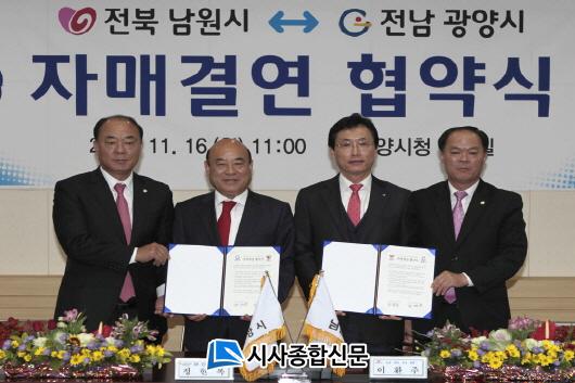 ÀÌȯÁÖ ³²¿ø½ÃÀåÀº ¡°±â¾÷Çϱâ ÁÁÀº °æÁ¦ Á߽ɵµ½Ã ±¤¾ç½Ã¿Í ¹®È°ü±¤µµ½Ã ³²¿ø½Ã°¡ ÇàÁ¤, °æÁ¦, »çȸ, ¹®È, ±³À°, üÀ° µî ´Ù¾çÇÑ ºÐ¾ß¿¡¼ ±³·ùÇù·ÂÇÑ´Ù¸é °øµ¿¹ßÀüÀÇ µ¿¹ÝÀÚ°¡ µÉ ¼ö ÀÖÀ» °ÍÀ¸·Î ±â´ëÇÑ´Ù¡±¸ç ¡°ÇùÁ¤¼¿¡ ¼¸í¸¸ ÇÏ°í ³¡³ª´Â ÀڸŰῬÀÌ ¾Æ´Ï¶ó Ç×»ó ½ÃÀÛÇÏ´Â ¸¶À½À¸·Î µÎ Áö¿ªÀÇ ÀåÁ¡À» Àß Á¶ÈÇØ¼ ¹Ì·¡¸¦ ÇÔ²² ¿¾î°¥ ¼ö Àֱ⸦ Èñ¸ÁÇÑ´Ù¡±°í ¸»Çß´Ù.