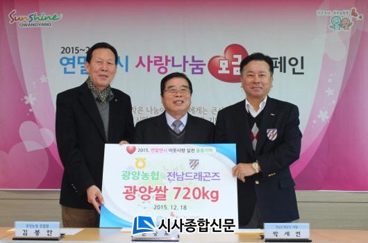 ÀÌ·¸°Ô Àû¸³ÇÑ 720kgÀÇ ½ÒÀº 12¿ù 18ÀÏ Àü³²µå·¡°ïÁî ¹Ú¼¼¿¬ »çÀå°ú ±¤¾ç³óÇù ±èºÀ¾È Á¶ÇÕÀåÀÌ ÇÔ²² ±¤¾ç½Ã »ç¶û³ª´® º¹ÁöÀç´ÜÀ» ¹æ¹®ÇÏ¿© Áö¿ªÀÇ À¯¼Ò³â, À¯¼Ò³â Ã౸ºÎ¸¦ À§ÇØ ½á´Þ¶ó°í Àü´ÞÇß´Ù.