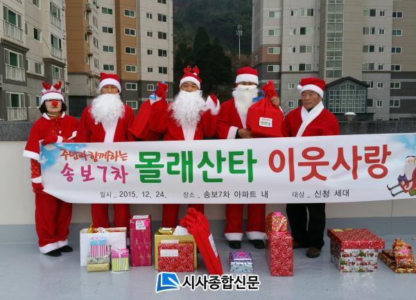 ±¤¾ç ¿ë°¸®¿¡ À§Ä¡ÇÑ ¼Ûº¸7Â÷ ¾ÆÆÄÆ®´Â Å©¸®½º¸¶½º¸¦ ¸ÂÀÌÇØ ã¾Æ°¡´Â »êŸ À̺¥Æ®¸¦ ½Ç½ÃÇÏ°í °ü¸®»ç¹«¼Ò¿¡¼ ±Ù¹«ÇÏ´Â Á÷¿ø°ú °æºñ¿øµé·Î ±¸¼ºµÈ »êŸÇҾƹöÁöµéÀÌ ¾î¸°À̵鿡°Ô ¼±¹°À» ³ª´²ÁÖ´Â Çà»ç¸¦ ½Ç½ÃÇß´Ù.