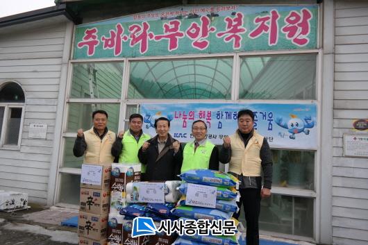 À̳¯ Çà»ç´Â ÀÚÄ© ¿¬¸»¿¬½Ã µé¶á »çȸÀû ºÐÀ§±â¿¡ Æí½ÂÇÏ¿© °æÁ¦ÀûÀ¸·Î ¾î·Á¿ò¿¡ Ã³ÇØÀÖ´Â ¼Ò¿ÜµÈ ÀÌ¿ôÀ» Àذí Áö³»Áö ¾Ê³ª ÇÏ´Â ¿ì·Á ¼Ó¿¡ Çϴ÷ΠºÀ»ç´ÜÀº ´õ ºÒ¾î ÇÔ²² »ç´Â ¾Æ¸§´Ù¿î µ¿ÇàÀ» À̾°íÀÚ ÀÌÁ¾¸í Áö»çÀåÀ» ºñ·ÔÇÑ Á÷¿øµéÀº »çȸº¹Áö½Ã¼³ÀÎ Áֹٶ󹫾Ⱥ¹Áö¿øÀ» ¹æ¹®ÇÏ¿© ÇöÀåÀ» µÑ·¯º¸°í, ½Ò20kg 10Æ÷´ë¿Í ¶ó¸é, ¼¼Á¦ µî »ýÇÊǰÀ» Àü´ÞÇÏ¸ç ¾Ö·Î»çÇ×À» °øÀ¯ÇÏ´Â µî µû¶æÇϰí ÇູÇÑ »îÀ» »ì¾Æ°¥ ¼ö ÀÖµµ·Ï °Ý·ÁÇÏ¿´´Ù.
