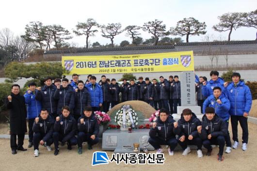 [±¤¾ç/½Ã»çÁ¾ÇսŹ®] Àå¹Î±Ô ±âÀÚ = Àü³²µå·¡°ïÁî(»çÀå ¹Ú¼¼¿¬)°¡ 6ÀÏ ±¹¸³¼¿ïÇöÃæ¿ø °í ¹ÚÅÂÁØ Àü ȸÀå ¹¦¼Ò¸¦ ã¾Æ 2016³â ÃâÁ¤½ÄÀ» °¡Á³´Ù. À̹ø ÃâÁ¤½Ä¿¡´Â ¹Ú¼¼¿¬ »çÀå°ú ³ë»ó·¡ °¨µ¶ µî ±¸´Ü ÀÓÁ÷¿ø°ú ¼±¼ö´Ü ¸ðµÎ°¡ Âü¿©Çß´Ù.