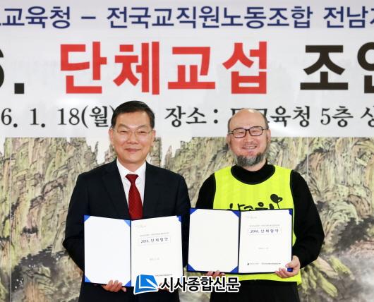[Àü³²/½Ã»çÁ¾ÇսŹ®]¾çµÎ¿µ ±âÀÚ = Àü³²µµ±³À°Ã»(±³À°°¨ À常ä)Àº 18ÀÏ ¿ÀÀü 10½Ã Àü³²µµ±³À°Ã» »óȲ½Ç¿¡¼ Àü±¹±³Á÷¿ø³ëµ¿Á¶ÇÕÀü³²ÁöºÎ(ÁöºÎÀå Á¶Ã¢ÀÍ)¿Í 2016 ´ÜüÇù¾à ü°á½ÄÀ» °¡Á³´Ù.