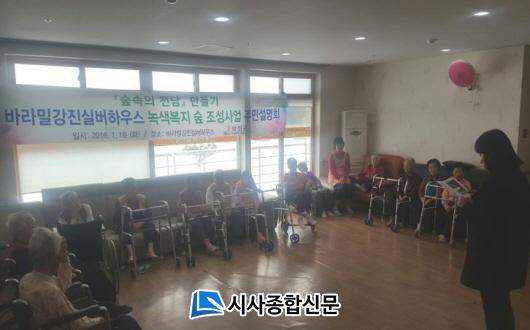 À̹ø ¼³¸íȸ´Â ½Ã¼³ °ÅÁÖÀÚ ¹× ÁֹεéÀ» ´ë»óÀ¸·Î ¾ÕÀ¸·Î Á¶¼ºµÉ ³ª´®½£¿¡ ´ëÇÑ ÃßÁø¹æÄ§°ú °èȹ, ±â´ëÈ¿°ú µîÀ» »ó¼¼È÷ ¾È³»Çϰí ÁֹεéÀÇ ÀǰßÀ» µè´Â ¼ø¼·Î ÁøÇàµÆ´Ù, °Áø±ºÀº Áö³ÇØ »ê¸²Ã» ³ì»ö»ç¾÷´ÜÀÌ °ø¸ðÇÑ 2016³âµµ ³ì»öÀÚ±Ý Áö¿ø»ç¾÷¿¡ ¼±Á¤µÇ¾î »ç¾÷ºñ 1¾ï ¿øÀ» È®º¸ÇÏ°í »çȸº¹Áö½Ã¼³¿¡ ³ª´®½£ 1°³¼Ò¸¦ Á¶¼ºÇÑ´Ù.