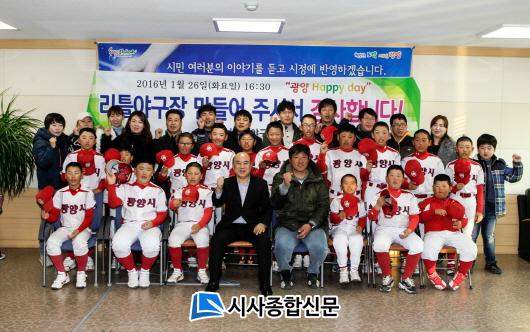 Á¤Çöº¹ ±¤¾ç½ÃÀåÀº ¾î¸° ¼±¼öµéÀÇ ¶æÀ» Çì¾Æ·Á ÈçÄèÈ÷ ±¸Àå °Ç¸³À» ¾à¼ÓÇÏ°í »ç¾÷ºñ 5õ¸¸ ¿øÀ» È®º¸ÇÏ¿© 2015³â 12¿ù 1ÀÏ ¾ß±¸ÀåÀ» ÁذøÇß´Ù.