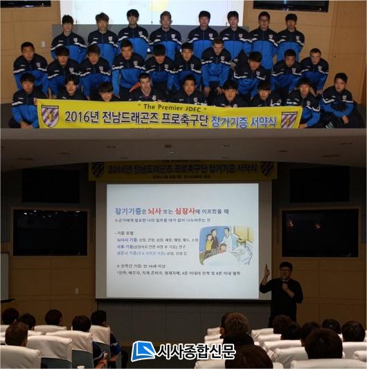 Àü³²µå·¡°ïÁî´Â K¸®±×ÀÇ ÀÏ¿øÀ¸·Î¼ Ã౸ÆÒµé°ú ±¹¹Îµé·ÎºÎÅÍ ¹ÞÀº »ç¶ûÀ» »çȸ¿¡ ȯ¿øÇϰí Á¡Â÷ ´Ã¾î°¡´Â Àå±âÀÌ½Ä ´ë±âÀÚ¿¡ ºñÇØ ±âÁõÀÚ°¡ ÅξøÀÌ ºÎÁ·ÇÑ Çö½Ç¿¡¼ Àå±â±âÁõ¿¡ ´ëÇÑ »çȸÀû ºÐÀ§±â¸¦ Á¶¼ºÇϱâ À§ÇØ Àü³² ±¸´Ü ±¸¼º¿ø ¸ðµÎ°¡ Àå±â±âÁõ¿¡ µ¿ÂüÇÏ°Ô µÇ¾ú´Ù.