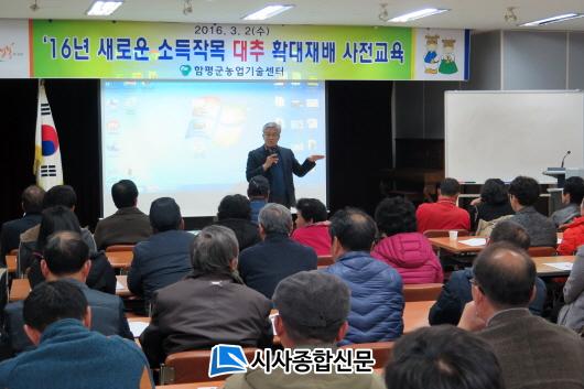 ¼öÈ®½Ã±â ¶ÇÇÑ ÇÔÆò±ºÀÌ °³ÃÖÇÏ´Â ´ëÇѹα¹ ±¹Çâ´ëÀü°ú ¸Â¾Æ ÃàÁ¦¹æ¹®°´¿¡¼ ¿ëÀÌÇÏ°Ô ÆÇ¸ÅÇÒ ¼ö ÀÖ¾î Æ´»õÀÛ¸ñÀ¸·Î ÀûÇÕÇϸç, ÇöÀç 30³ó°¡°¡ 5ha¸¦ Àç¹èÇϰí ÀÖÀ¸¸ç ±ºÀº ¿ÃÇØ±îÁö 70³ó°¡, 14ha·Î È®´ëÇÒ °èȹÀ̸ç, À̸¦ À§ÇØ Áö³ 2ÀÏ ÇÔÆò±º³ó¾÷±â¼ú¼¾ÅÍ ±³À°°ü¿¡¼ ´ëÃß Àç¹è±â¼ú º¸±ÞÀ» À§ÇÑ ±³À°À» ½Ç½ÃÇßÀ¸¸ç, »ç¾÷ ÃßÁø¹æÇâ°ú °ú¿ø Á¶¼º¿ä·É ±³À°¿¡ ³ó¹Î 100¿© ¸íÀÌ Âü¿©ÇØ ³ôÀº °ü½ÉÀ» ³ªÅ¸³Â´Ù.