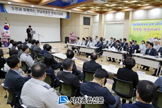 Àü³²°æÂûûÀå°ú ³ª´©´Â ¾ÈÀüÇÑ Àü³²À̾߱⸦ ÁÖÁ¦·Î ÁøÇàµÈ ÇöÀå°£´ãȸ´Â, °æÂûÀÌ Áö¿ªÁֹεéÀ» Á÷Á¢ ¸¸³ª Áö¿ª Ư¼º¿¡ ¸Â´Â ¾ÈÀü´ëÃ¥À» ÇÔ²² ³íÀÇÇϰíÀÚ ¸¶·ÃµÇ¾ú´Ù, ¹Ú°æ¹Î Àü³²Áö¹æ°æÂûûÀåÀº Á¤º¸Åë½Å ¹ß´Þ, °æÁ¦ °èÃþ°£ ¾ç±ØÈ µîÀ¸·Î ÀÎÇÑ º¯ÈµÈ Ä¡¾È¿©°ÇÀ» Áø´ÜÇϸç, ÀÌ¿¡ È¿°úÀûÀ¸·Î ´ëÀÀÇϱâ À§ÇØ Àü³²°æÂûÀº ±¹¹ÎÀÌ ÇÊ¿ä·Î ÇÏ´Â ¿ªÇÒÀ» ¼öÇàÇÒ ¼ö ÀÖ´Â ¡°¹®Á¦Çذá»ç¡±·Î¼ ¿ªÇÒÀ» ¼öÇàÇØ¾ß ÇÑ´Ù°í °Á¶ÇÏ¿´´Ù.