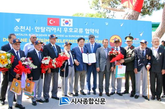 À̳¯ Çù¾à½Ä¿¡´Â Á¶ÃæÈÆ ¼øÃµ½ÃÀå°ú ¸àµ¥·¹½º Æ¢·¼ ¾ÈÅ»¸®¾Æ ½ÃÀå, ¹«Çϸ޸£ Æ¢¸£°Ô¸£ ¾ÈÅ»¸®¾Æ ÁÖÁö»ç, ÅÍŰ ¾ÈÅ»¸®¾Æ ÂüÀü¿ë»çȸ ÁöºÎÀå Á¦ÀÌ¿¤¾¾ µî 100¿© ¸íÀÌ Âü¼®ÇÑ °¡¿îµ¥ ±º¾Ç´ëÀÇ ¾Ö±¹°¡¿Í ¾Æ¸®¶ûÀÌ ¿ï·ÁÆÛÁø °¡¿îµ¥ ¿·È´Ù.