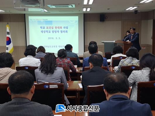 Àü³²µµ±³À°Ã»(±³À°°¨ À常ä)Àº 3ÀÏ º»Ã»¿¡¼ 2016³âµµ Çб³ º¸°Ç½Ç Çö´ëÈ »ç¾÷ ´ë»óÇб³ÀÇ º¸°Ç±³»ç ¹× ÇàÁ¤½ÇÀå, ±³À°Áö¿øÃ» ´ã´çÀÚ¸¦ ´ë»óÀ¸·Î »ç¾÷ ¹æÇâ°ú ÀýÂ÷ µîÀ» ¼³¸íÇÏ´Â ÇùÀÇȸ¸¦ °¡Á³´Ù. ¿ÃÇØ Çб³ º¸°Ç½Ç Çö´ëÈ »ç¾÷ ´ë»óÇб³´Â ÃÊ 10°³±³, Áß 3°³±³, °í 1°³±³À̸ç, ±³´ç 2õ¸¸¿ø¾¿ ¸ðµÎ 2¾ï8õ¸¸¿øÀÌ ÅõÀԵȴÙ.