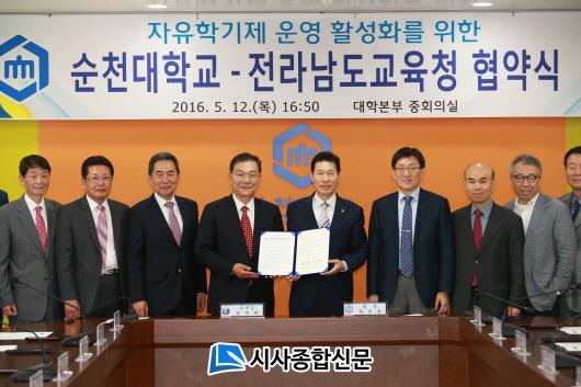 [Àü³²/½Ã»çÁ¾ÇսŹ®]¾çµÎ¿µ ±âÀÚ = Àü³²µµ±³À°Ã»(±³À°°¨ À常ä)Àº 12ÀÏ ¼øÃµ´ëÇб³ º»ºÎ 3Ãþ ¼ÒȸÀǽǿ¡¼ ¼øÃµ´ëÇб³(ÃÑÀå ¹ÚÁø¼º)¿Í ÀÚÀ¯ÇбâÁ¦ ¿î¿µ Ȱ¼ºÈ¸¦ À§ÇÑ ¾÷¹«Çù¾àÀ» ü°áÇß´Ù.