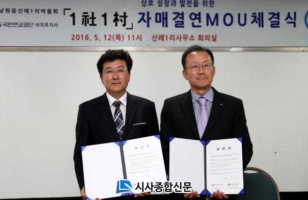 [¼±ÍÆ÷½Ã/½Ã»çÁ¾ÇսŹ®]°í¼º¹Î ±âÀÚ = ¼±ÍÆ÷½Ã ³²¿øÀ¾ ½Å·Ê1¸®¿Í ±¹¹Î¿¬±Ý°ø´Ü¼±ÍÆ÷Áö»ç´Â ¿À´Ã 12ÀÏ(5. 12) ½Å·Ê1¸® À̻繫¼Ò¿¡¼ 1»ç(Þä) 1ÃÌ(õ½) Çù¾àÀ» ü°áÇÏ°í »óÈ£ Çù·ÂŰ·Î ÇÏ¿´´Ù.