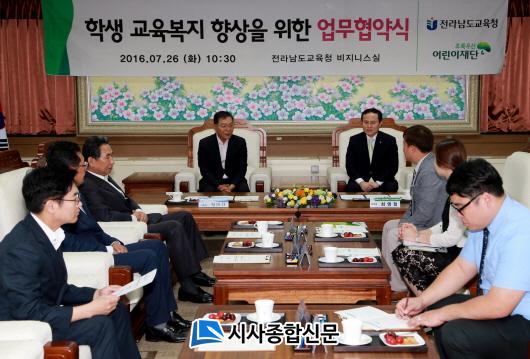 [Àü³²/½Ã»çÁ¾ÇսŹ®]¾çµÎ¿µ ±âÀÚ = Àü¶ó³²µµ±³À°Ã»(±³À°°¨ À常ä)Àº 26ÀÏ(È) º»Ã»¿¡¼ ÃÊ·Ï¿ì»ê¾î¸°ÀÌÀç´Ü Àü³²Áö¿ªº»ºÎ(º»ºÎÀå ÃÖ¿µÃ¶)°ú ¾÷¹« Çù¾àÀ» ü°áÇϰí, ¸ðµÎ°¡ ÇູÇÑ Çлý ±³À°º¹Áö Çâ»óÀ» À§ÇÑ Çù·ÂÀ» ¾à¼ÓÇß´Ù.